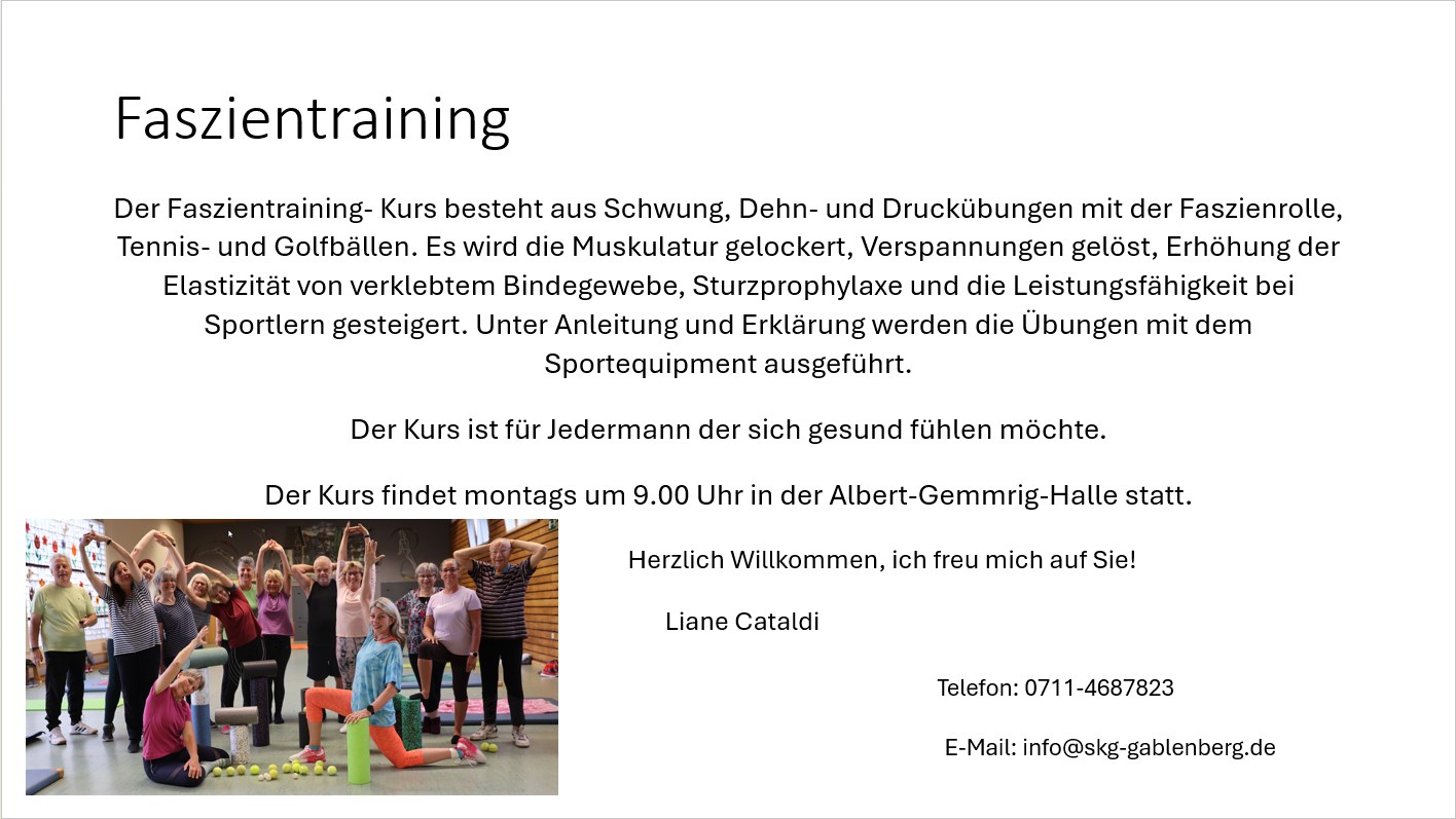 Folgende Angebote im Bereich Faszientraining, Fitness für Frauen, Senioren 70+ sowie Senioren-Volleyball bieten wir aktuell bei der SKG Gablenberg
